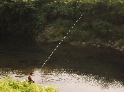 竿の影が映るだけでアユは敏感に散ります。
