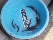 午後2時頃の釣果、潜没橋付近高室氏20匹、高槻市の高橋氏、殿橋下流、19匹、12から17センチぐらい。