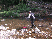 細野川、長野付近で16から17センチ級2時間で20匹。水位が低いので、多く入られると厳しいかも。