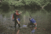 午後2時頃から、殿橋下流カーブで室田聡氏21匹、13から17センチ。こきの橋付近で服部好則氏が16匹。柏原で安井雅彦氏17匹、15から16センチ。