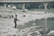 山陵橋付近、上流で午前中15匹の情報、橋の上流で芦田氏がぼつぼつ掛かりだした。(写真シモツケ)