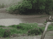 午後5時頃から夕立、弓削川からの濁りと増水。