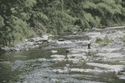 午後5時、午前中の雨の影響で、漁協下で約10センチアップで20センチ減水に回復していますが、上流部で降った雨です。明日は、また少し減水ですが、水況の変化の後なので、期待できるのでは。