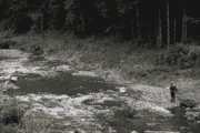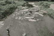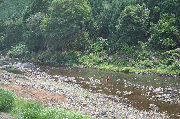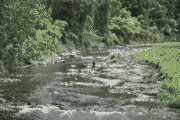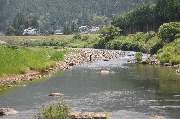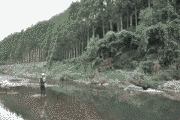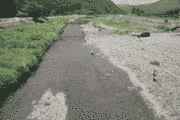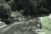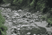 こちらの川のアユ写真は、既に放流した天然アユ、良くハム群れと、金魚のように泳いでいます。