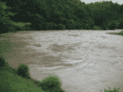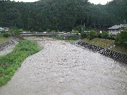 [内容] 水位は、昨夜から下がっていますが、これから雨の予報。午前7時水位 上黒田 2.47m 周山 1.61m 中地 2.08m 五本松 0.92m