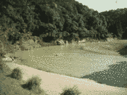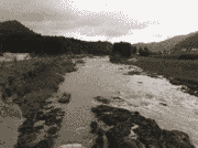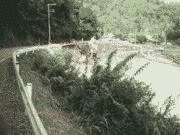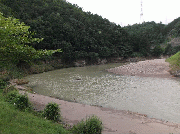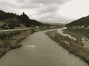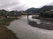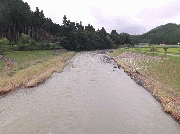 午後4時現在、朝より少し水位は下がりましたが、濁りは上流、交流の森と同じ濁りです。