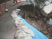 八木方面からの細野川通行止め、中地方面も通行と目、ダムサイドも通行止め。