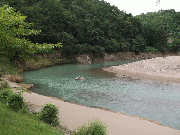 本流での友釣りは、上流部から下流部全般的に、新垢ついていなく、残り垢を狙って数匹、5匹前後。