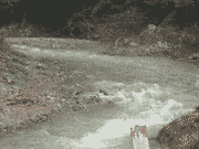 細野川芦見谷より濁水、出会いから上流か、下流長野に行けば薄まっています。昨日17センチが細野川で釣れたそうです。