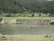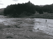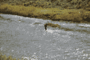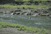 水深の浅い流れの緩いところを狙って網を入れられていますが場所が、限られています。
