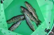 集中放流区で釣り歩いて5匹(写真の釣果)