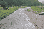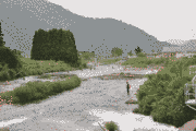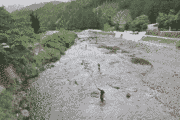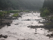 午後4時過ぎから弓削地区と山国地区で夕立があり山国下流部と弓削川は、午後5時30分現在濁っています。