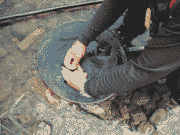 山陵橋上流にワイヤーが掛かっていました。釣り人さんのご協力で引き上げました。