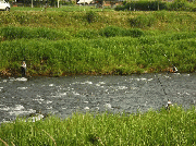 山国神社付近、昨日と今日で60匹以上の釣果。漁協前で釣果追加中。