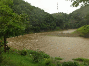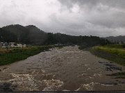 [内容] 午前7時30分現在、漁協下で平水より1メートル近く増水。