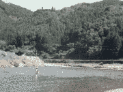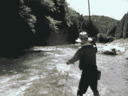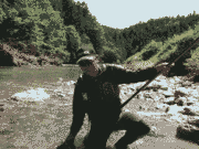 パラグライダー付近で保津川船頭の福井さん21匹。