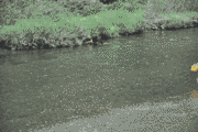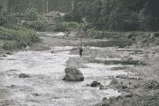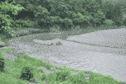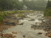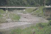 午後6時水位、上黒田 1.84m 周山 0.47m 中地 1.06m 五本松 0.35m 花背でも薄く濁り有り、雨が収まってきています。これ以上降らなければ上流から濁りがとれ留と思いますが、下流部は濁りが残る可能性有り。