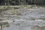 [内容] 朝方から一時強い雨、漁協前で平水より約10センチ減水まで回復。