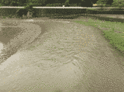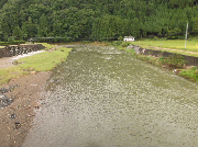 [内容] 午前7時30分現在、平水より約35センチ高、減水から50センチ以上増、濁りは、花背から無し。