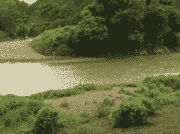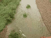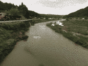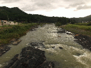 山陵橋の方が濁りが薄いですが、川底が見えないです。亀の甲の方が濁りが濃い状態で下流に下がるにつれて濁りが濃いです。