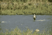 濁りは、薄い笹濁りで水深30から50センチ底が見える視界。