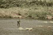 刺し網は、上から見るより流れが強いのと、水位がもう少し高く完全に包囲するのは難しいです。