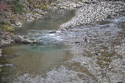 解禁前からのあまご放流が灰屋口上流から早稲谷付近と広い範囲に成魚放流のあまごが分散しています。