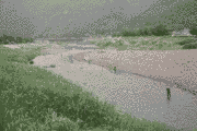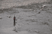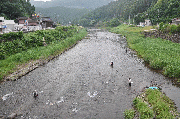 午前6時頃より、弱い雨が降りだしました。午前7時現在では、約10センチ減水で友釣り可能です。