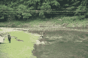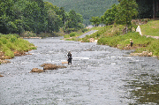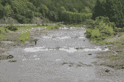 [内容] 午前5時30分現在、二日続けての夕立で水位は、平水より約15から20センチ高。薄い笹濁りが残っている程度で川幅の広いところ支流で可能です。