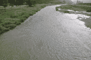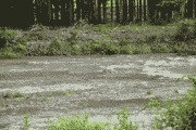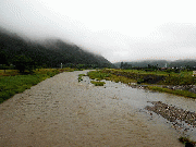 広河原・花背笹濁りで約40センチ高。濁りがとれるのは、広河原でも午後から。