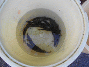 潜没橋上流で田村武さん20匹、18センチ以上あり。