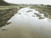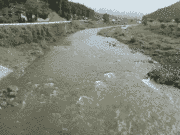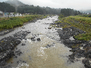 [内容] 午前6時現在平水より約15から20センチ高。濁りは茶色。午前6時の水位、上黒田 1.90m 周山 0.52m 中地 0.91m 五本松 0.38m