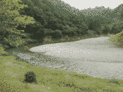 黒田地地区まで防災カメラの濁りです。広河原・花背地区から濁りがとれて来ています。上流部可能。山国地区も後数時間は掛かりそうです。