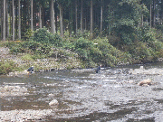 橋の上から数匹見えるところもありますが、網を入れる程の匹数が見えてません。網の入れやすいところは、大半捕獲出来ているようで、深みや石の凹凸があるところには、残っていそうです。もう一度、30センチぐらいの増水で落ち着くと楽しめる可能性あり。