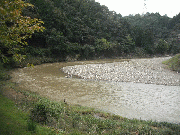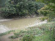昨夜の雨で増水、平水より約40センチ高、濁りあり。