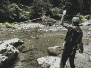 水位が下がるとき、水温上昇時等アユの警戒心に注意して釣りを。