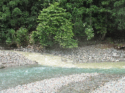 灰屋口から上流、濁り無しで、昨日から入っておられる方もあり、数匹釣果あり。