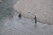 徐々に濁りは、薄まってきて、昨日より薄い笹濁り、膝下の視界は見えてきました。