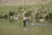 おとりは、流れないように水深のあるところへ。