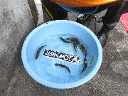 昨日、漁協上流2時間で7匹、17から20センチ。(写真右上)