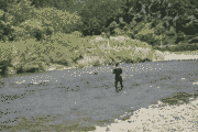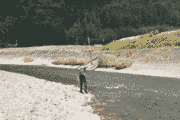 大きな増水でない割に、濁ったため、石に泥がかぶっているところがあります。