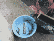 おとりカンは、水が良く入れ替わり温度の上がらないところへ。