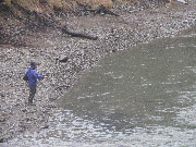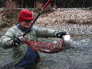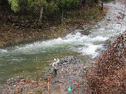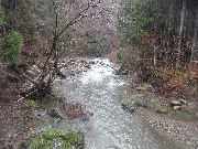 上流あまご集中放流区は、15から30センチ高、濁りは薄い笹濁りのところも、上流の広河原は、濁り無し。