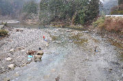 上流あまご集中放流区は、10から15センチ高、濁りは、無し。