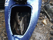能見口で浦さんが1時間半で10匹。(写真曳舟の鮎)