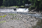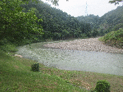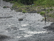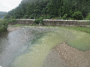周山から下流、昨日の夕立で今年一番の高い水位です。弓削川の濁りと水量が多くなっています。体調の悪い方は、入川は、注意、避けて下さい。