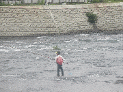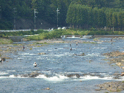 周山大橋から上流は、30センチ高で濁りもなくなり午後から釣り人もそこそこ入川。