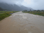 漁協前で平水より1.1メートル高、濁りあり。
