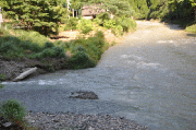 谷は、濁りもとれているところもあり、あまご釣りは可能と予測します。