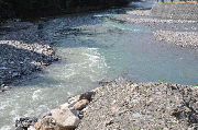 正午現在、灰屋口から上流は、ほとんど濁り無し。